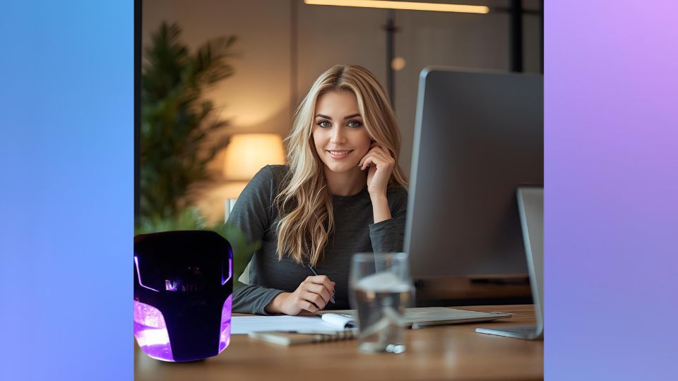 Raikkaat vaihtuvat valot, ihanan raikas tuoksu, piristävät huomattavasti työpäivääsi ja samalla ilmanraikastin poistaa pienimuotoisesti työhuoneen tietokoneista tulevia säteitä ja pölyhiukkasia työhuoneesta.