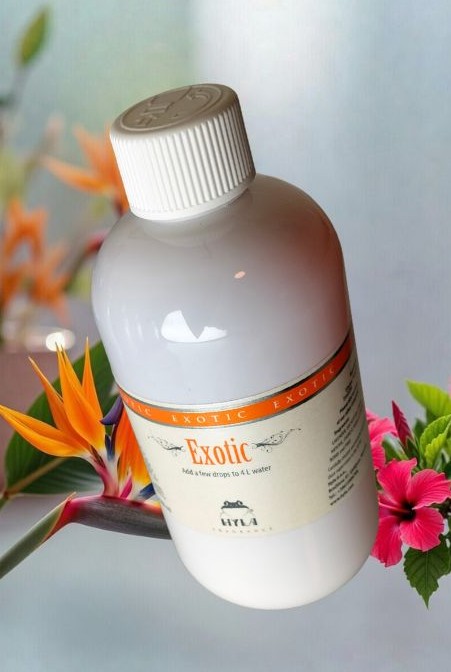 Hyla tuoksu Eksoottinen 500 ml luo romanttisen ja kutsuvan ilmapiirin. Lisää vain muutama tippa Hyla-imurin tai ilmanraikastimen veteen ja tuo kotiin eksoottisten kukkien ja hedelmien raikas tuoksu.